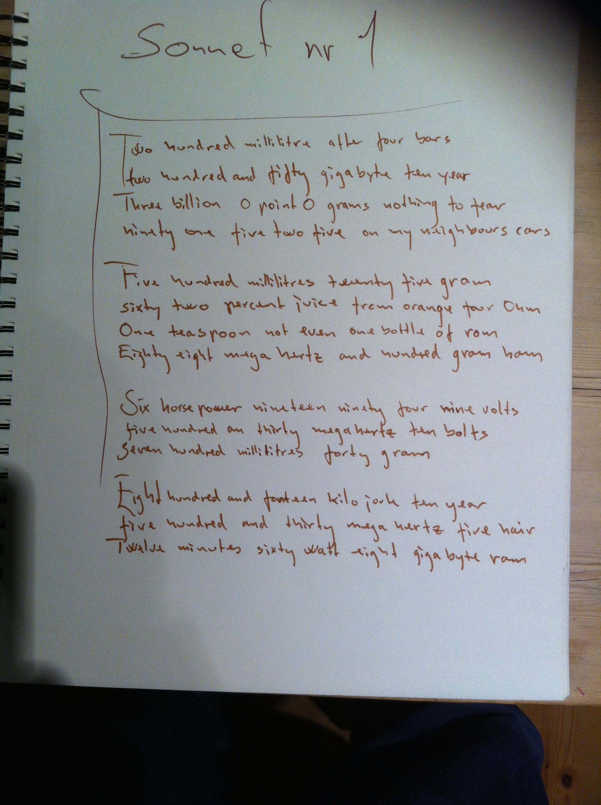 Second hour (and a little) second day, a sonnet: