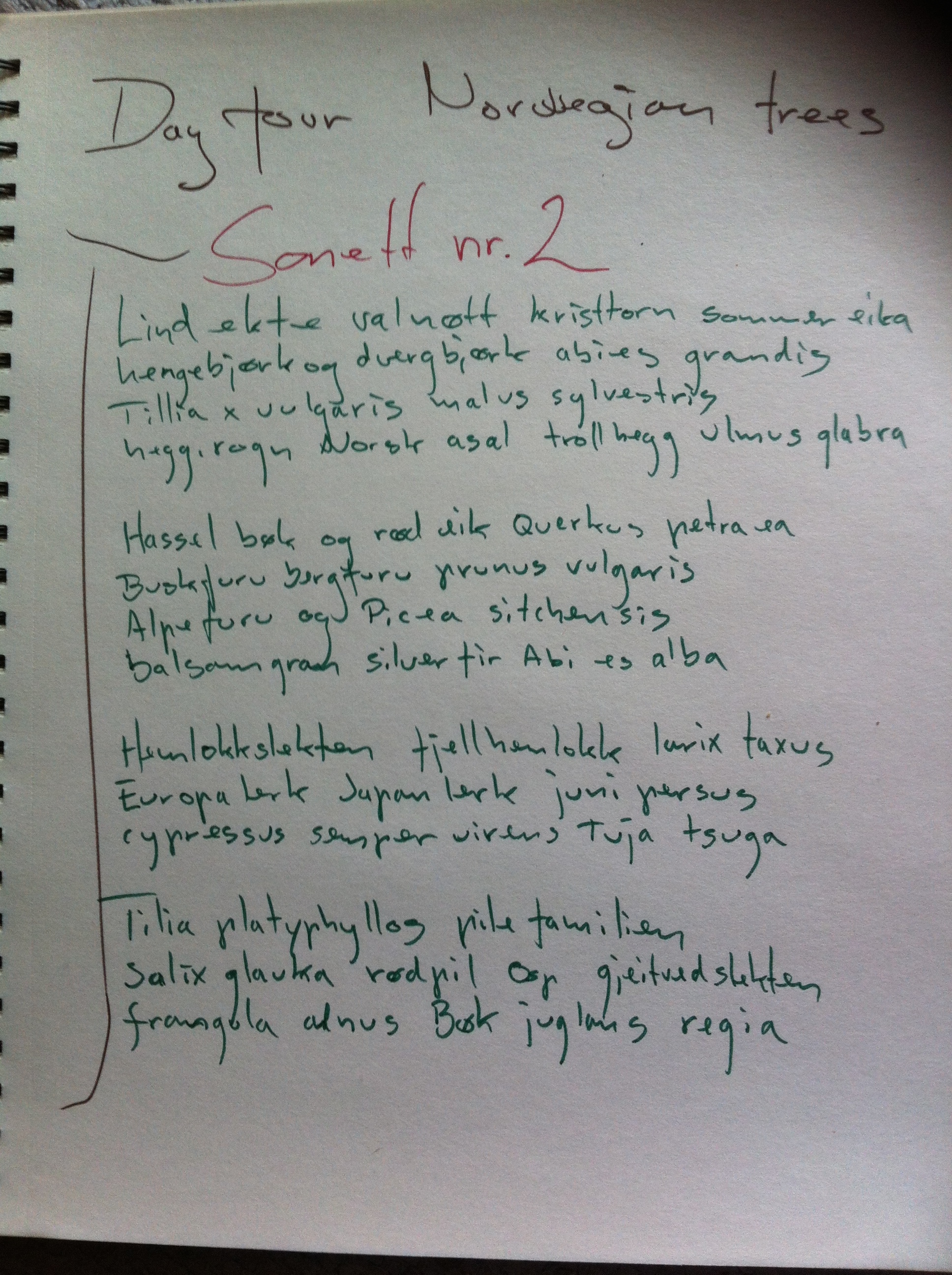 9:00 A sonnet made from the names of Norwegian trees: