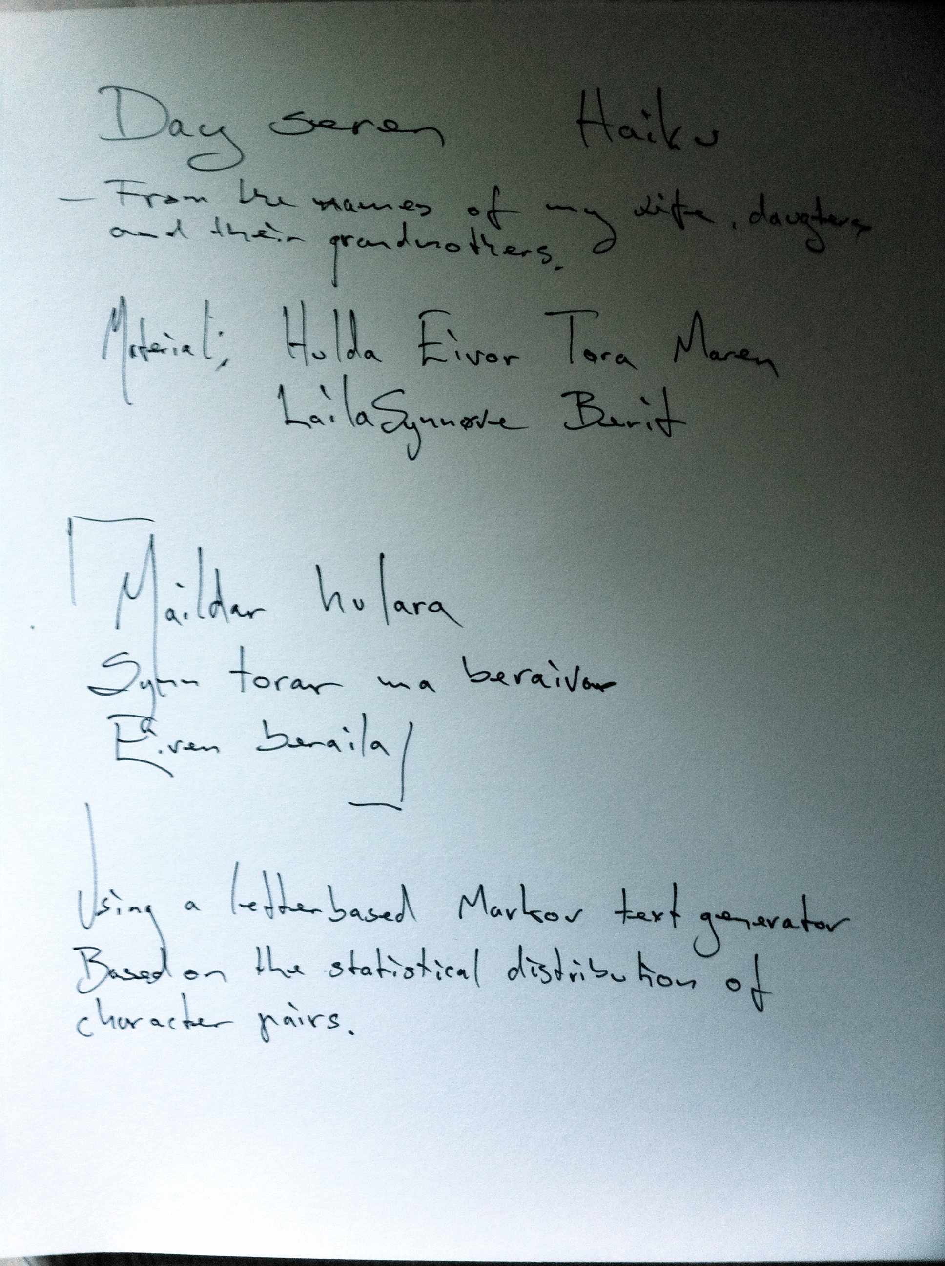 A haiku made from the names of your daughters, wife, and the two grandmothers.